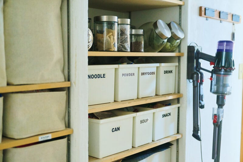 食材のストックなどは種類別にボックスへ収納。