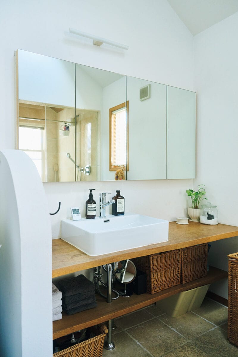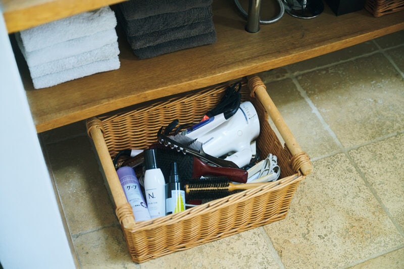 「棚から出して台に置いたら終わり。急いでいる朝は、まず元に戻しません。そのため、歯みがき粉などはふたを取り外さないですむ容器などを選んでいます」