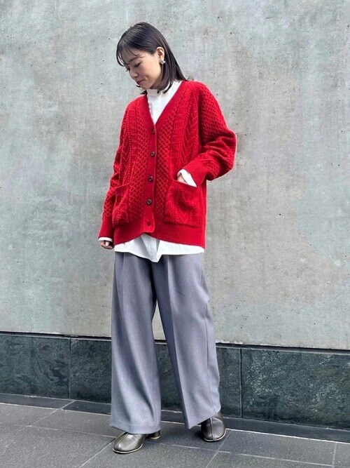 【大人の赤コーデ1】ゆったりVネックカーディガンは着回し力抜群