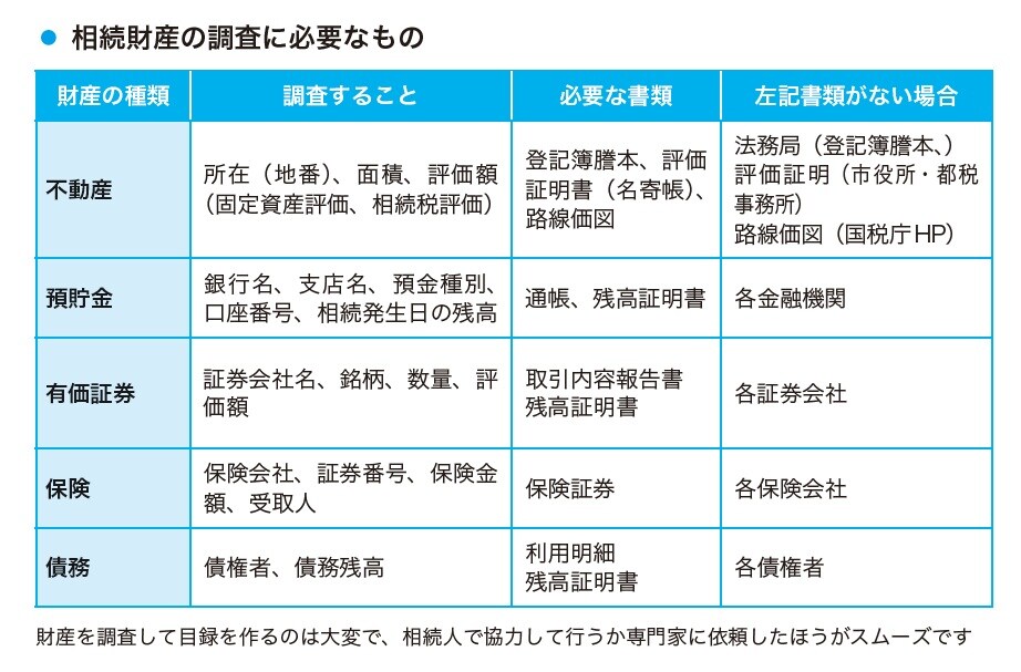 相続財産の調査から財産目録の作成まで