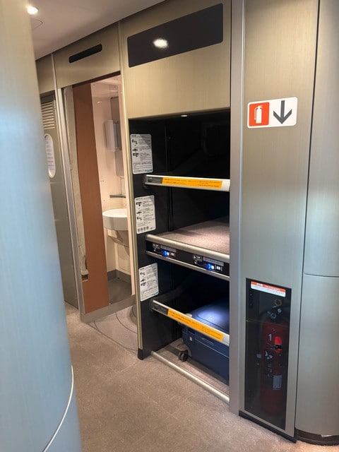 そこで特大荷物は車両最後部の「特大荷物スペース」のみで対応できるとの判断から、2025年7月1日以降、小型・中型のスーツケースであってもデッキ洗面所横の「特大荷物コーナー」を事前予約不要で利用できる試行を実施している。