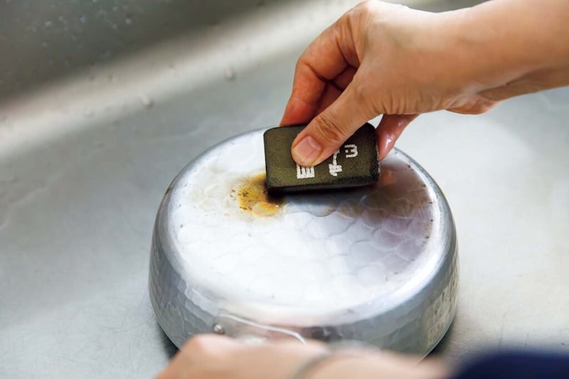 もともとはサビを落とす用なのだけど、私はお鍋の焦げつきを落とすのに使っていて、スペアも用意しています。削るので柔らかい素材の鍋には適していないのですが、焦げを放置せず、すぐに掃除すれば水で濡らして軽くこするだけで、すぐにきれいになります。消しゴムのような感覚ですね。本体を傷つけないように優しく削り落としてください。