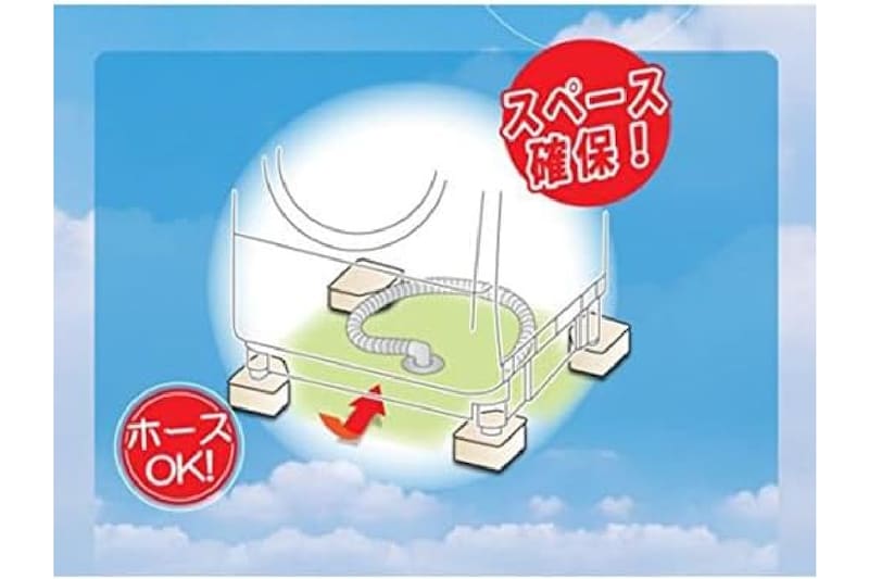 Amazonでみる高さを出すことで床との接地面が安定し、洗濯中の横揺れやズレを防いでくれます。