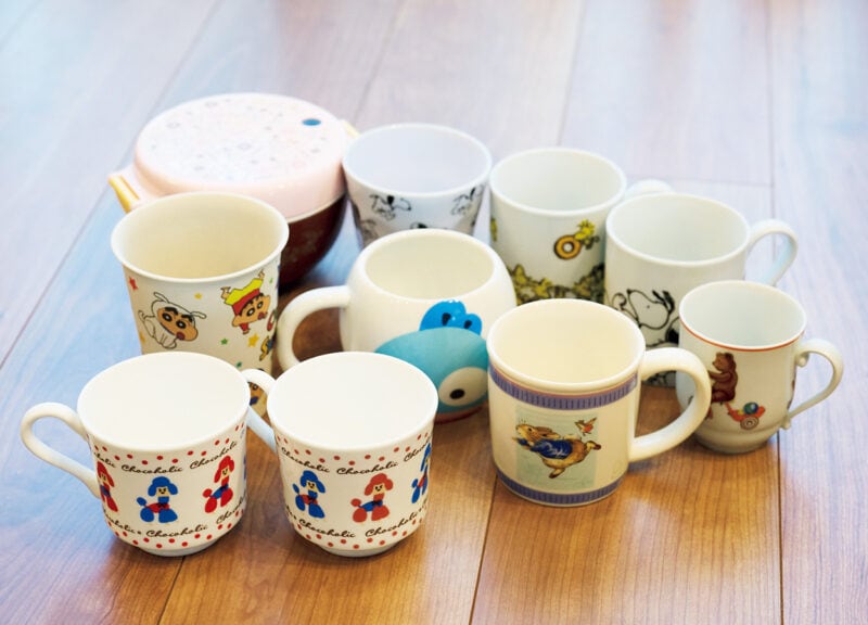 キャラクターがプリントされたマグカップや弁当箱などは使わないと判断。