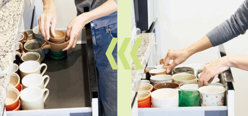 いちばん使いやすい引き出しに、ぎっしり入っていたマグカップを半分に。