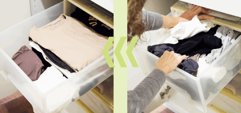 引き出しが閉まらないほど、パンパンに入っていた部屋着は、10枚減。