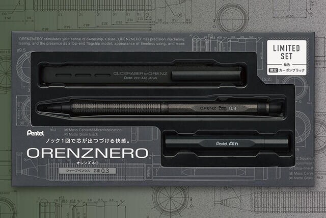 オレンズネロは、1960年にノック式シャープペンシル「ぺんてる鉛筆」を生み出したぺんてるが、半世紀にわたり追求してきた技術を結集したシャープペンシルのフラッグシップモデル。ノック1回で書き続けられる「自動芯出し機構」を搭載し、当時3,000円というシャープペンシルとしては高価格帯のモデルでありながら、2017年の発売直後には品薄状態が続くなど大きな反響を呼んだ。