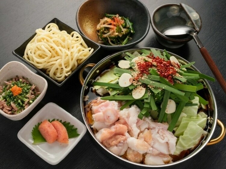 JR博多シティ内「くうてん」に店を構える、創業33年のもつ鍋専門店です。活気あるオープンスペースの店内には、お一人様大歓迎のカウンター席を完備。駅直結で改札から徒歩2分という好立地は、博多到着後すぐのランチや、帰路につく前の“最後の晩餐”など、出張時の強い味方になってくれます。