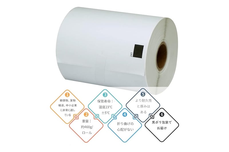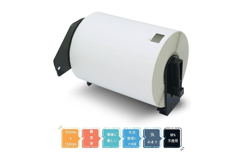 Amazonでみるこの大型感熱ラベルは、BrotherのQLシリーズに対応しており、宛名やバーコードをスムーズに印刷できる業務向けアイテムです。