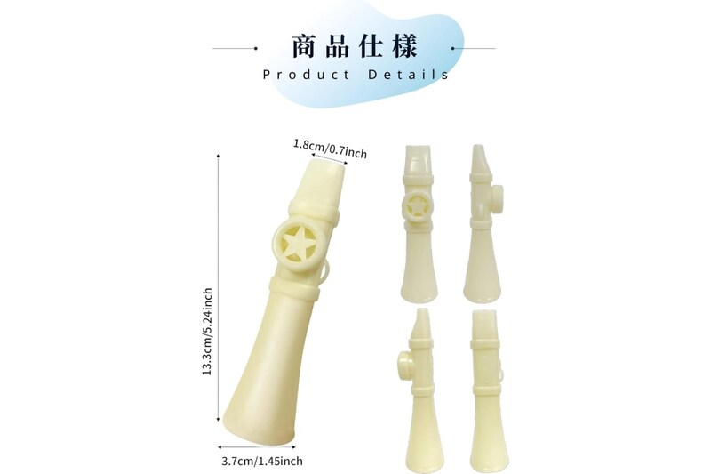 このカズーは軽量で持ち運びやすく、ストラップ付きなので外出先やイベントでも使いやすい設計です。