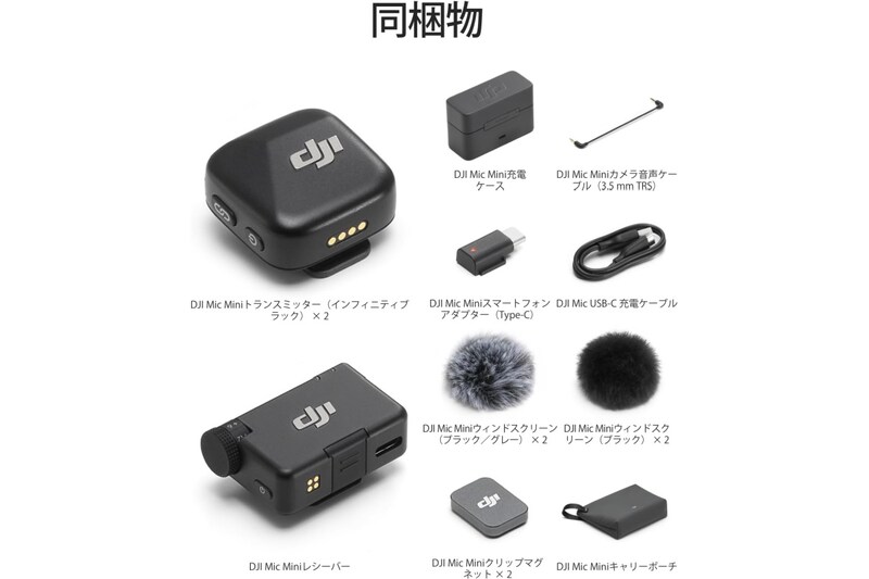2つの送信機と1つの受信機がセットになっているため、対談や複数人での撮影にも対応しやすい構成です。