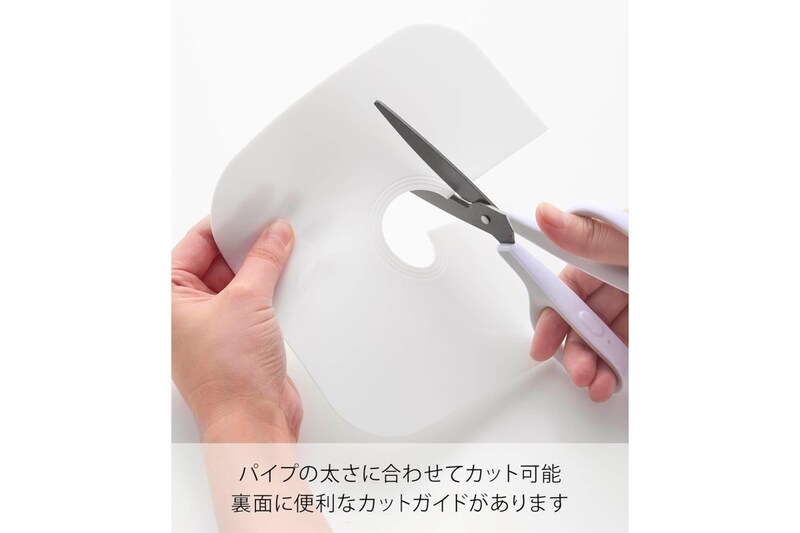 カットガイド付きなので、排水ホースの位置に合わせて微調整できる点も実用的です。
