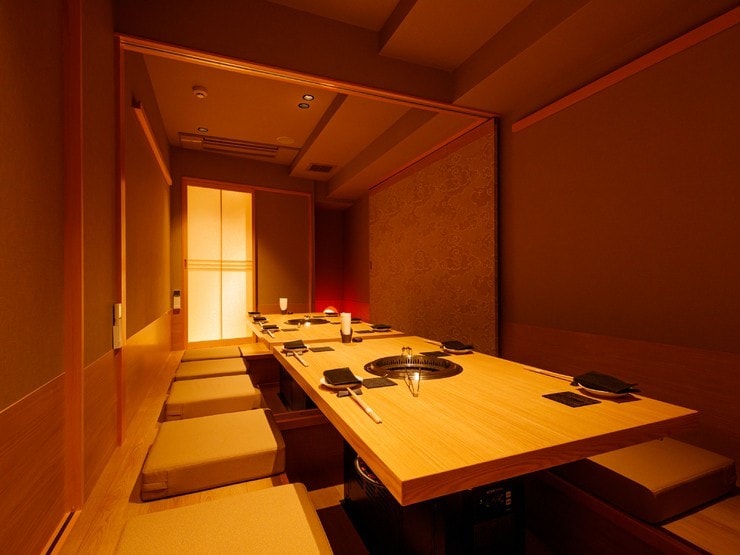 北新地駅より徒歩2分の場所にある、全室が完全個室の焼肉店。神戸ビーフ、松阪牛、近江牛の日本三大和牛と全国の銘柄牛を熟練の目利きによって厳選・管理し、熟成された最高級のお肉をさまざまな調理法で提供。焼肉、すき焼き、しゃぶしゃぶなどをアラカルトで注文できます。
