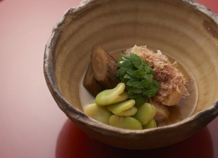 大阪上本町駅より徒歩4分、名店【味吉兆】にて長年修業を重ねた店主が腕を振るうミシュラン二つ星の日本料理店。食材は関西の農家から仕入れており、地産地消の料理を提供します。旬の素材を活かした懐石料理は、先附、煮物椀、八寸、焼物と、四季の移り変わりを感じる逸品ばかり。