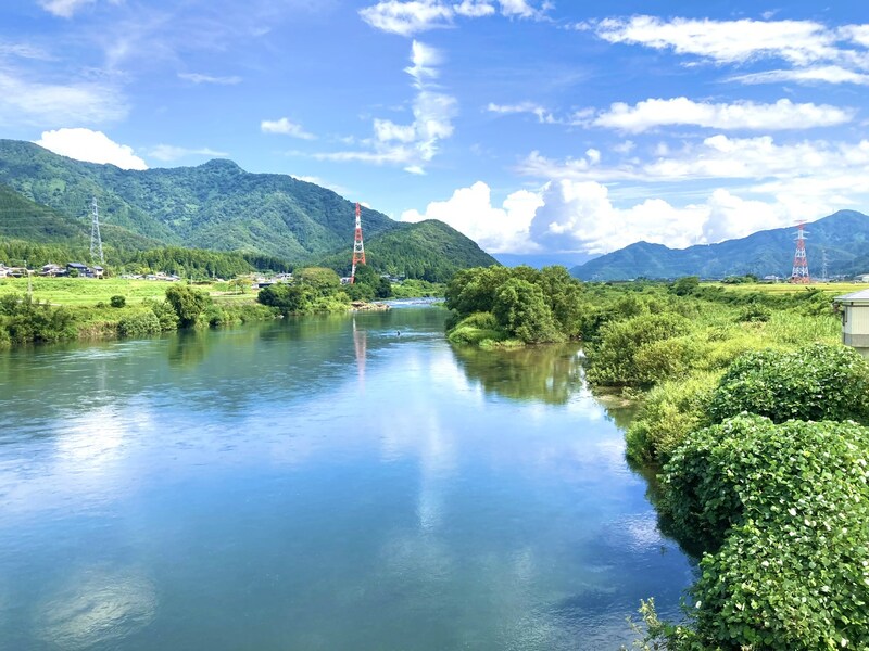 9月の福井はまだまだ暑く大変な道のりでしたが、途中九頭竜川の清流と里山の風景が癒してくれました。この九頭竜川で採れる鮎も有名です。
