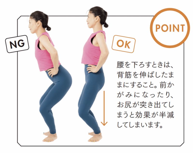 前かがみになったり、お尻が突き出てしまうと効果が半減してしまいます。