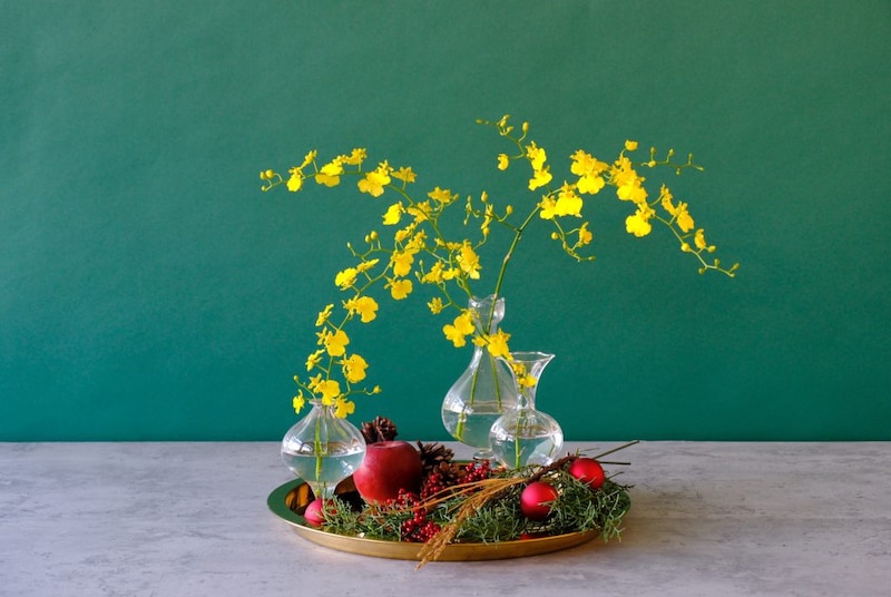 新年の花飾りにもよく似合うオンシジウムを使った花あしらいをご紹介します。