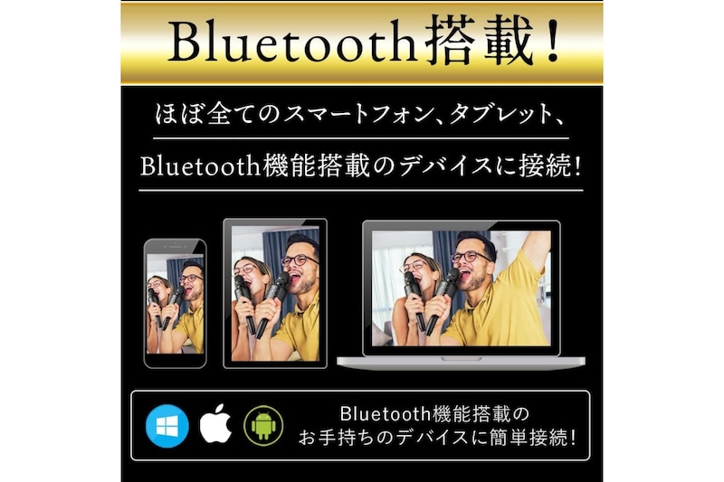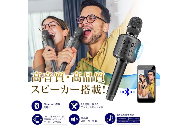 スマートフォンとつなぐだけで、すぐにカラオケが楽しめるワイヤレスマイクです。
