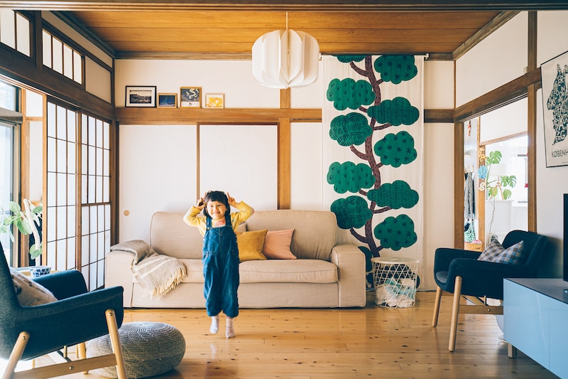 二間続きの和室をリビングに。古い家の面影を残した和洋折衷スタイル。築43年の昭和の一軒家、和を残しつつ北欧テイストのDIY改装。