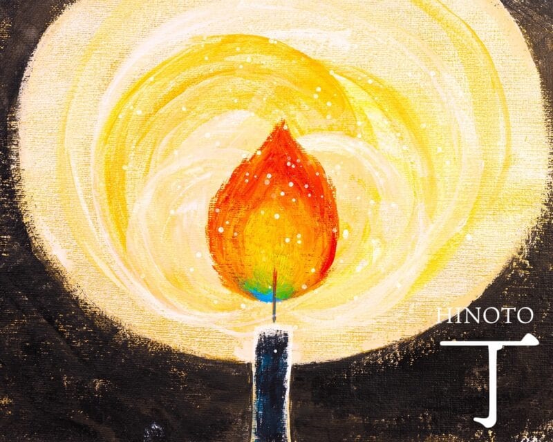 丁は、陰の「火」の象意であり、ロウソクのように暗いところで光っている状態です。ロウソクは暗闇を照らし、迷える人に希望を与える存在。ロウソクの灯りには静寂な雰囲気があり、心をおだやかに落ち着かせてくれます。丁を命式に持つ人は、みんなをサポートし励ますことに長けています。内省的で、秘めた情熱と思いやりを持っており、自己犠牲の精神で人に尽くします。ただ、我慢が限界を超えないよう、自分の意見も少しずつ小出しにして伝えましょう。