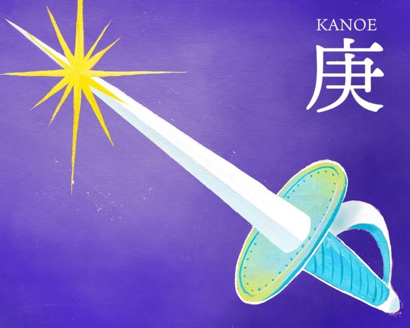 庚は、陽の「金」の象意であり、剣やナイフのように鋭く、切っ先がとがっている状態。剣やナイフは硬く鋭い刃を持つ道具であり、ものを切り裂く鋭い切れ味を持ちます。その取り扱いには注意が必要という一面はあるものの、庚を命式に持つ人は、決断を下す能力にすぐれ、難しい状況でも果敢に行動できます。また、知的好奇心が旺盛で新しいことを学ぶのを楽しみ、自己を磨く努力を惜しみません。ただ、敵とみなした人には容赦なく攻撃します。