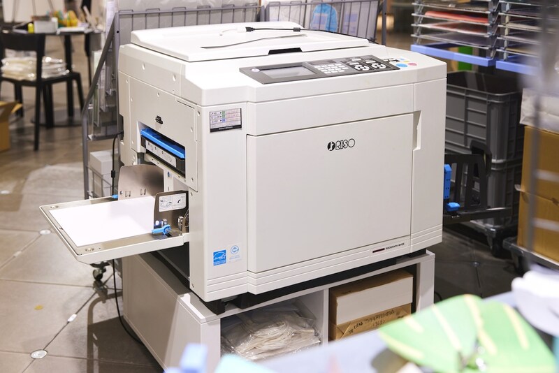 リソグラフは、1980年に登場した日本発の印刷手法である。印刷を行う専用機も、見た目はよくある「コピー機」そのものだが、光学的にデータを処理する一般的なそれとは違い、シルクスクリーンやガリ板と同じ「孔版印刷」の仕組みを利用している。