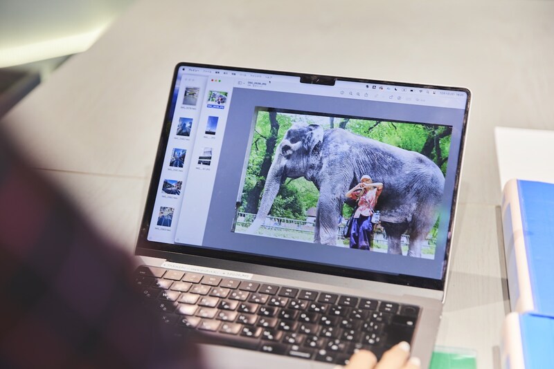 まずは印刷する写真選びから。本日、自身に課したテーマは「私にとっての東京」。スマホの中から、この日何気なく撮影した原宿の風景と、お気に入りの場所である井の頭自然文化園の思い出を選ぶ。