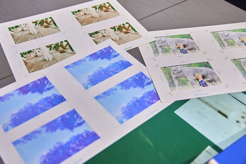 インクドラムの交換と製版、試し刷りを繰り返すこと数回、20分ほどでプリントが完成! 同じ写真でも、色の出方やかすれ具合が微妙に異なる。