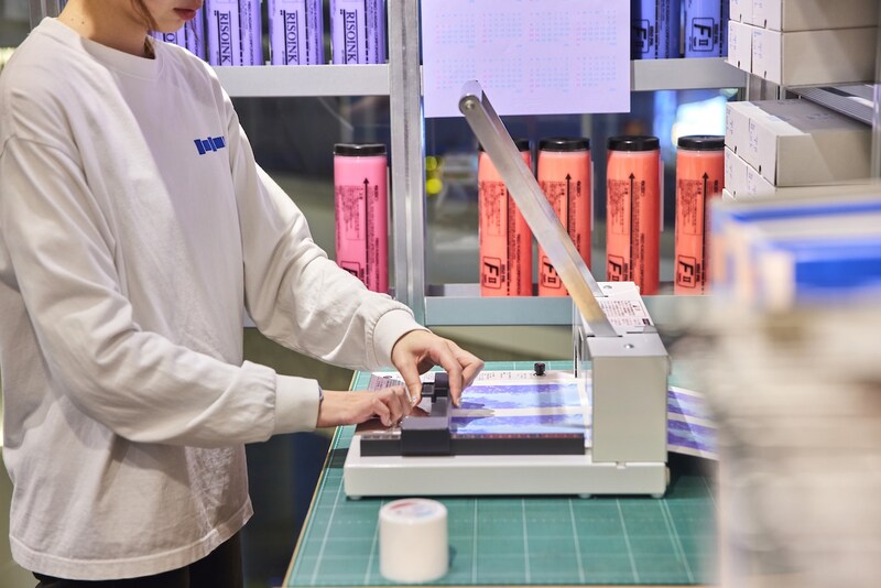 「コクヨは、ノートやファイルといった日常的な大量生産品を主力商品としてきましたが、その価値を再考するための実験的かつ実践的なプロジェクトとして、コピー・コーナーを立ち上げました。一点一点質感が異なるリソグラフ印刷を用いて、クリエイターとのコラボレーションやワークショップなどを行うファクトリーとショップを併せ持つ場になっています」。(池田さん)