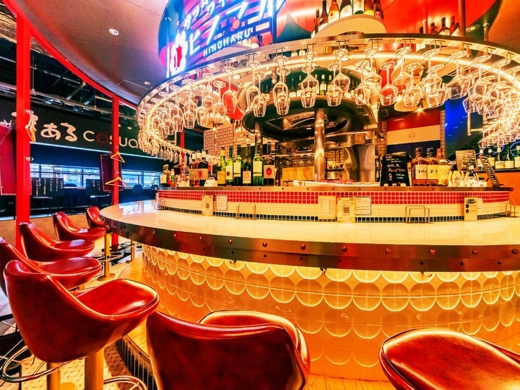 華やかな円形のカウンターが印象的な店内