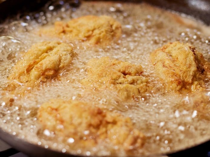 5.低温、高温で2度揚げ:カリッとジューシーに仕上がる。