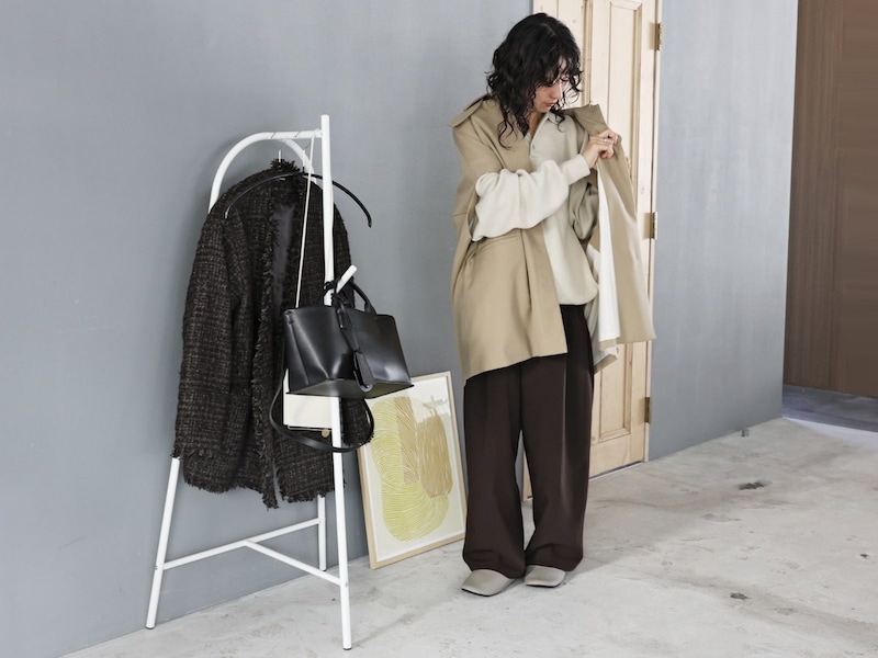 ロングコートが掛けられるくらい大きなサイズのものだと、狭い玄関にはどうしても圧迫感を与えます。けれどダウンジャケットなどミドル丈のアウターも主流の今、実はこれくらいのコンパクトなコートハンガーがジャストサイズなことも。