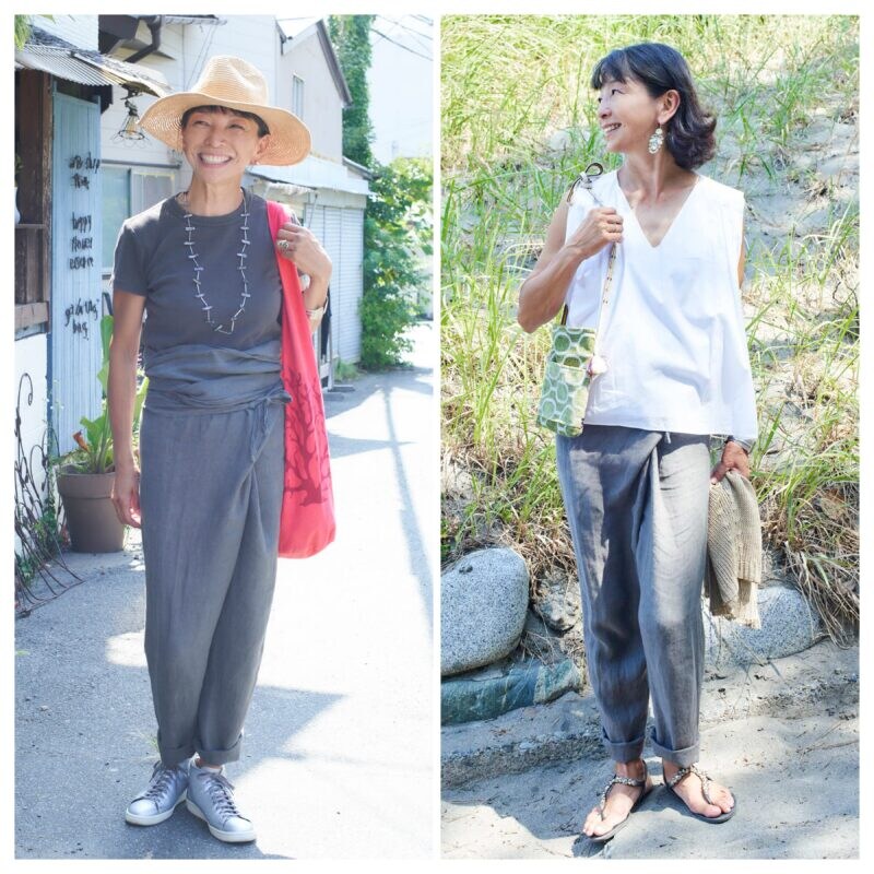 おしゃれ賢者のリアルな着こなしとワードローブを拝見する「1週間コーデ」。今週は葉山御用邸(神奈川県)の横、一色海岸近くにあるサロン「やまねこ」を主宰する山根佐枝さん(58歳/身長159.8cm)。フリーエディターの仕事で一泊取材に出かけるときは、リネンのカシュクールパンツを着まわします。トップスやアクセサリーをチェンジするだけで印象が変わる‟着まわしテク“をご紹介します。