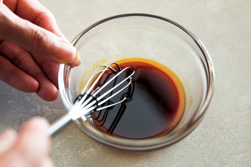 しょうゆとオリーブオイルはあらかじめしっかり混ぜて分離しないように。
