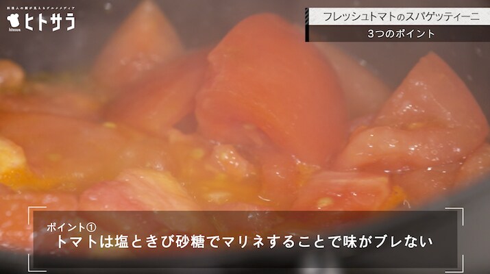 トマトは塩ときび砂糖でマリネすることで味がブレない