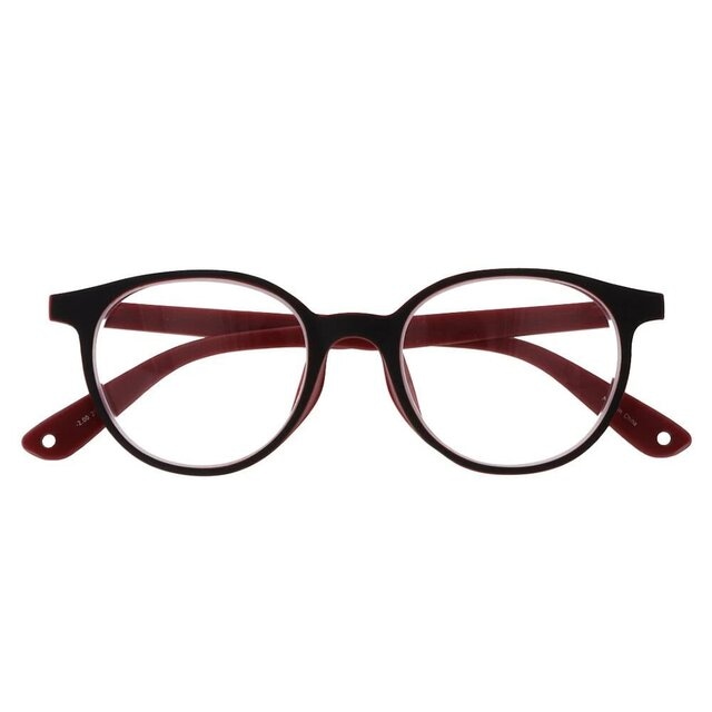 深みのあるブラック&レッドのメガネ。やさしいボストンシェイプで、くつろぎ時間にもなじむ軽やかなデザインです。金属不使用のオールプラスチック仕様でサビることがなく、扱いやすさも抜群。防曇レンズに対応しており、日常使いからリラックスタイムまで快適に過ごせます。