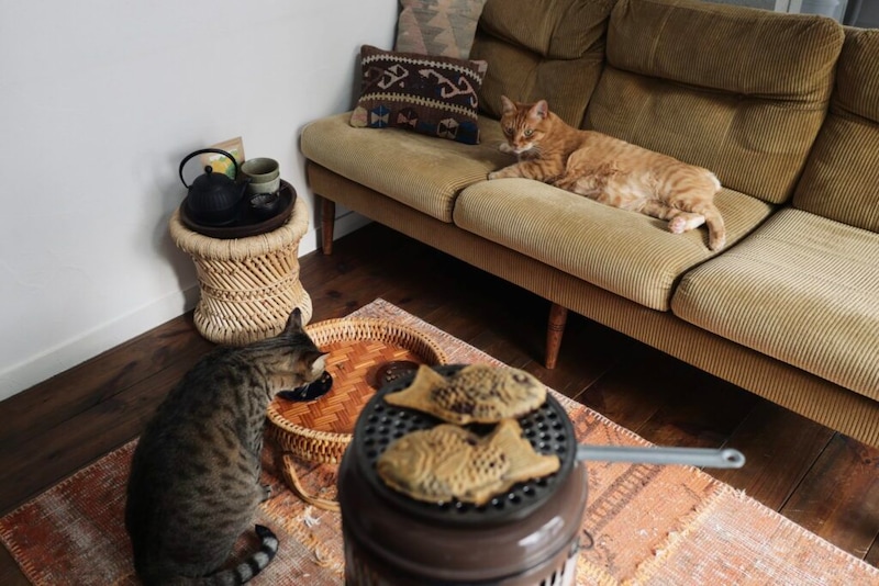 やあ、おまたせ。ぼくらはウメタ(左)とキンタ(右)! おなじ日に生まれた9さいの兄弟さ。さむい北国で、ふたりのお世話係と仲よく暮らしているよ。彼らはいつもカリカリじゃないものを食べているからさー、つい気になってスンスンしちゃうんだ。その甲斐あってか、雪にも負けない立派なボディに成長中! 食いしんボーイズはこうして誕生したってわけ。本誌2026年1月号の&NEKO「ゆるねこ探訪記」では、わたなべとしふみさんによるウメタとキンタの紹介イラストを掲載しています。