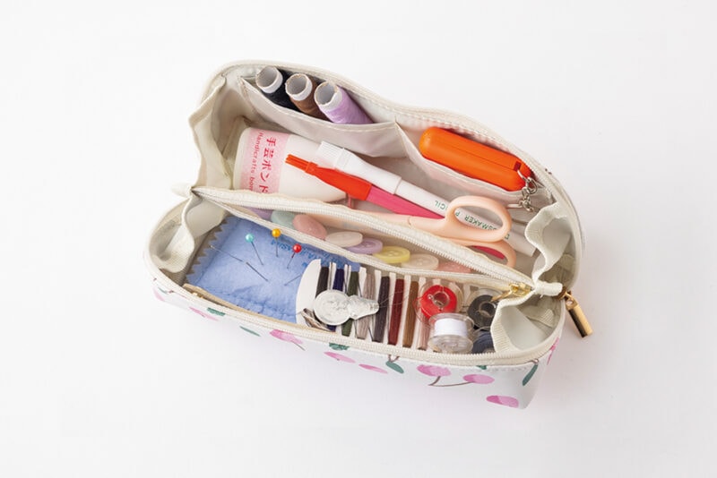 糸や針、ハサミをひとまとめにして、携帯用の裁縫ケースにもぴったり。