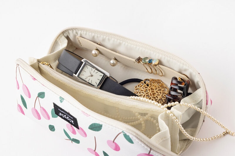 メイクブラシやリップにチーク、アイシャドウなど、お化粧直しに欠かせないコスメも収納OK! 外出時はもちろん、旅行用のコスメポーチとしてもおすすめ。