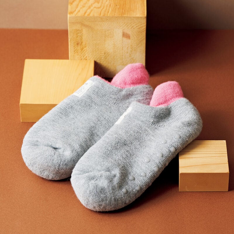 かかとがずれることなくフィットするほか、足底には滑り止め付き。洗濯機で丸洗いもOK。