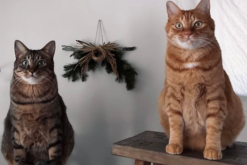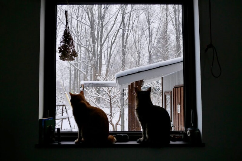 やあ、おまたせ。ぼくらはウメタ(左)とキンタ(右)! おなじ日に生まれた9さいの兄弟さ。さむい北国で、ふたりのお世話係と仲よく暮らしているよ。彼らはいつもカリカリじゃないものを食べているからさー、つい気になってスンスンしちゃうんだ。その甲斐あってか、雪にも負けない立派なボディに成長中! 食いしんボーイズはこうして誕生したってわけ。本誌2026年1月号の&NEKO「ゆるねこ探訪記」では、わたなべとしふみさんによるウメタとキンタの紹介イラストを掲載しています。