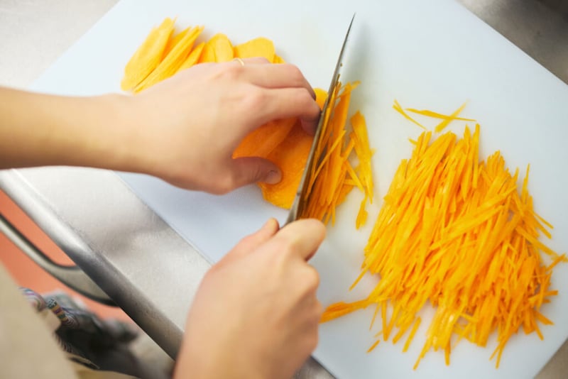 人参は千切りにし、全体の重さの2%の塩をまぶして10分ほど置いて水分を出す。