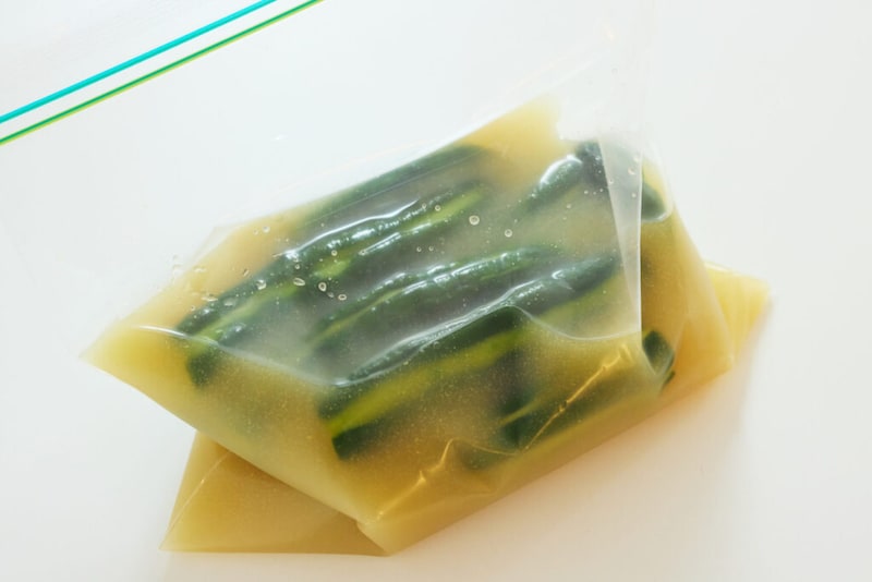 空気を軽く抜いて冷蔵庫で保管し、2日ほど漬けて完成。