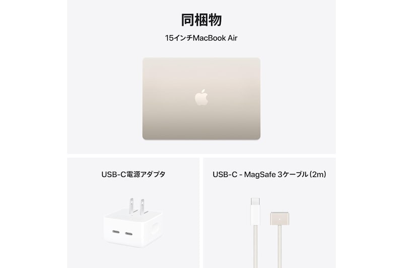 Apple 2025 MacBook Air 15インチ(M4)は、大画面でも薄く軽い使い心地を重視したい人に合うノートブックです。