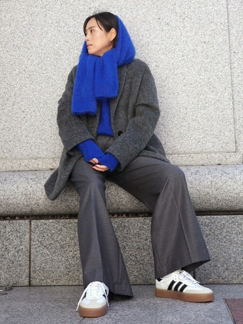 こちらで履いているのは、アディダスの大人気モデル「サンバ」を厚めのソールにアップデートした「SAMBAE(サンベイ)」。クラシックなデザインに、スタイルアップ効果も期待できる厚底ソールが魅力です。