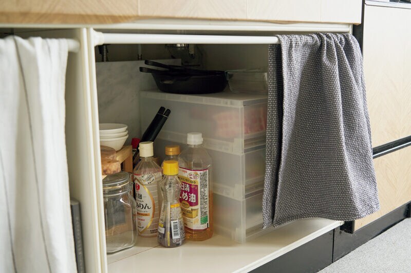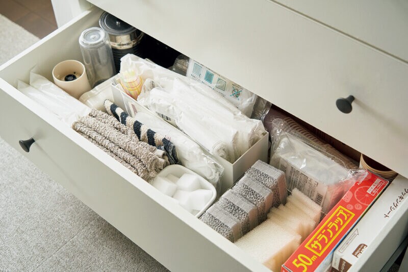 「毎日使う一軍の食器やスポンジ、ごみ袋などをしまっています」