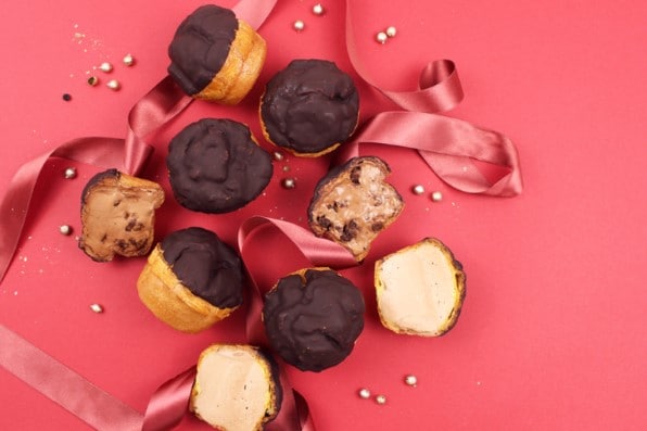 【バレンタイン限定】エクレア2種セット(クランチ/ミルク)は、ショコラクランチエクレア 約65g×3個とショコラミルクエクレア 約65g×3個が入っています。糖質量はショコラクランチエクレアが1個あたり5.6g、ショコラミルクエクレアが1個あたり3.7gです。価格は2,808円(税込)です。