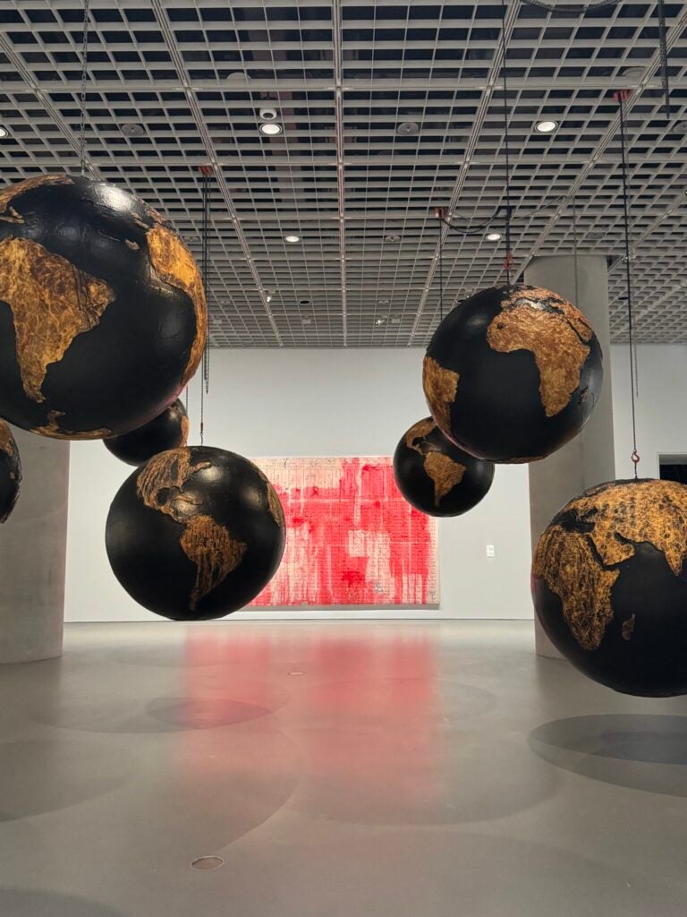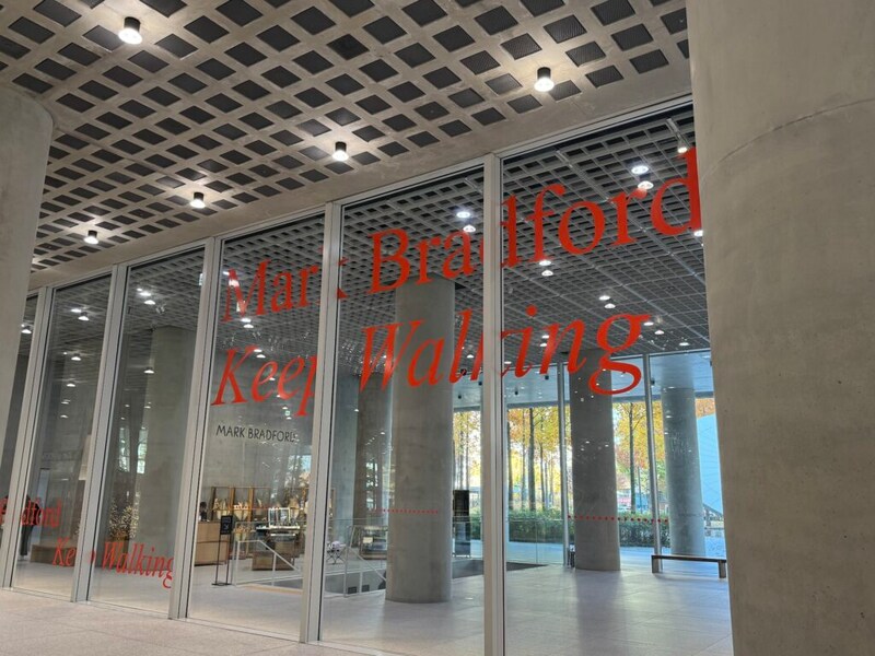 最初に向かったのは化粧品で有名な韓国発〈アモーレパシフィック〉が芸術支援を目的に2018年にオープンした美術館「Amorepacific Museum of Art」。お目当ては、アメリカを代表する現代美術家マーク・ブラッドフォードの個展「Keep Walking」です。韓国では初、アジアでも過去最大規模の展示は、巨大なインスタレーションや映像作品など盛りだくさんの内容で、しかも僕が訪れたときは偶然にも他のお客さんがほとんどいなかったので、贅沢な貸切状態。ミュージアムグッズのセンスもよく、お土産選びも楽しい時間でした。この展示は2026年1月25日まで開催中。