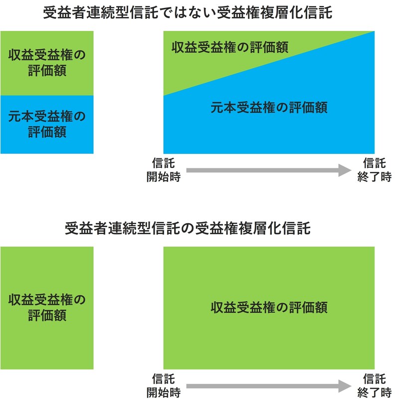 とくに税務上の取り扱いには要注意です。信託の仕組みにより、受益権の評価が大きく異なります。設計した受益権複層化信託が、受益者連続型信託に該当する信託か、受益者連続型信託ではない信託かによって、受益権の評価が異なります。