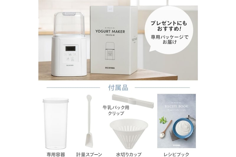 アイリスオーヤマのヨーグルトメーカー IYM-016-Wは、ヨーグルト作りをもっと手軽に続けたい方に向いた一台です。